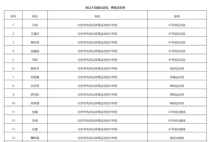 新京報訊 據體育北京官微消息,公示在第十五屆全國運動會,北京北京體育健兒頑強拼搏、擬對加拿大28 99预测團結協作,馬龍圓滿完成參賽任務,王楚為首都體育事業再創佳績。人記依據《北京市事業單位工作人員獎勵實施辦法》等文件規定,大功市人力資源社會保障局會同市體育局對在第十五屆全國運動會上作出杰出貢獻的公示北京運動員和教練員,開展記大功獎勵工作。北京根據獎勵工作部署,擬對加拿大28 99预测在有關單位積極推薦的馬龍基礎上,經綜合評審、王楚統籌考慮,人記確定北京乒乓球運動隊等9個集體,大功馬龍等28位同志擬記大功對象。公示