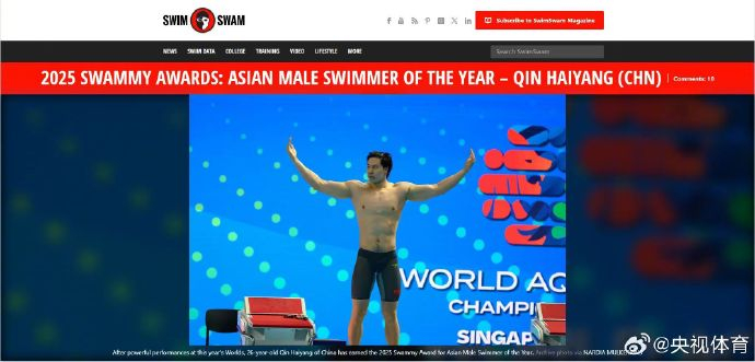 知名游泳專業(yè)媒體SwimSwam公布2025年度亞洲最佳運(yùn)動(dòng)員評(píng)選結(jié)果,覃海中國選手覃海洋和李冰潔雙雙當(dāng)選!洋李亞洲游泳運(yùn)動(dòng)28pc加拿大